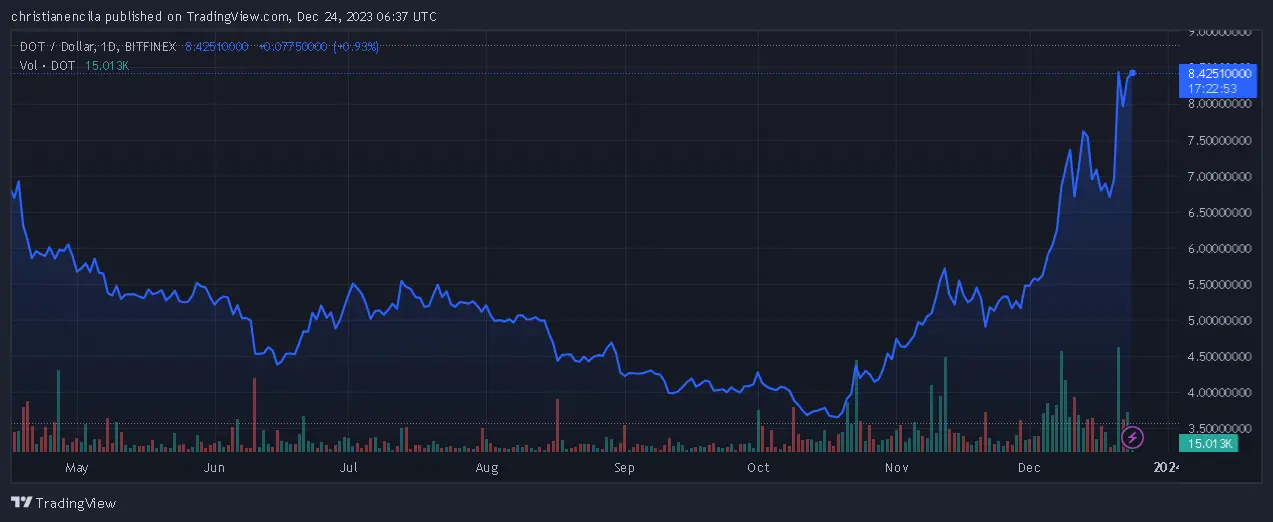 With its breakthrough beyond the $7.9 barrier, the cryptocurrency set a new record for 2023 and demonstrated the growing interest and confidence of investors in Polkadot.