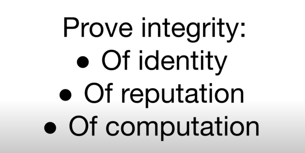 We have the ability to prove integrity, to prove identity, reputation, and computational integrity.