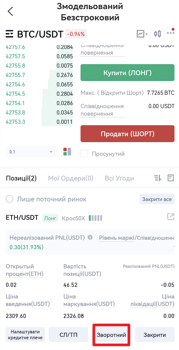 - Ви можете побачити кнопку «Реверс» на вкладці «Позиція» на сторінці ф’ючерсної торгівлі.