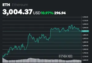 Станом на момент публікації, ETH торгувався за $3,004, знизившись на 1.6% за останні 24 години, тоді як за тиждень друга за величиною крипто за ринковою капіталізацією піднялася більш ніж на 10%.