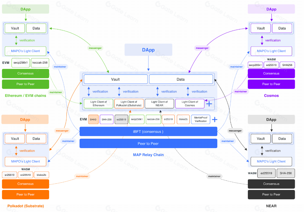 Quy trình xác minh chuỗi chéo của MAP Protocol, được thúc đẩy bởi công nghệ máy khách nhẹ và bằng chứng không có kiến thức, cung cấp giải pháp tương tác blockchain an toàn, hiệu quả và phi tập trung. Điều này làm cho sự tương tác giữa các mạng blockchain khác nhau liền mạch và không đáng tin cậy, đảm bảo tính bảo mật và tính toàn vẹn của các giao dịch chuỗi chéo.