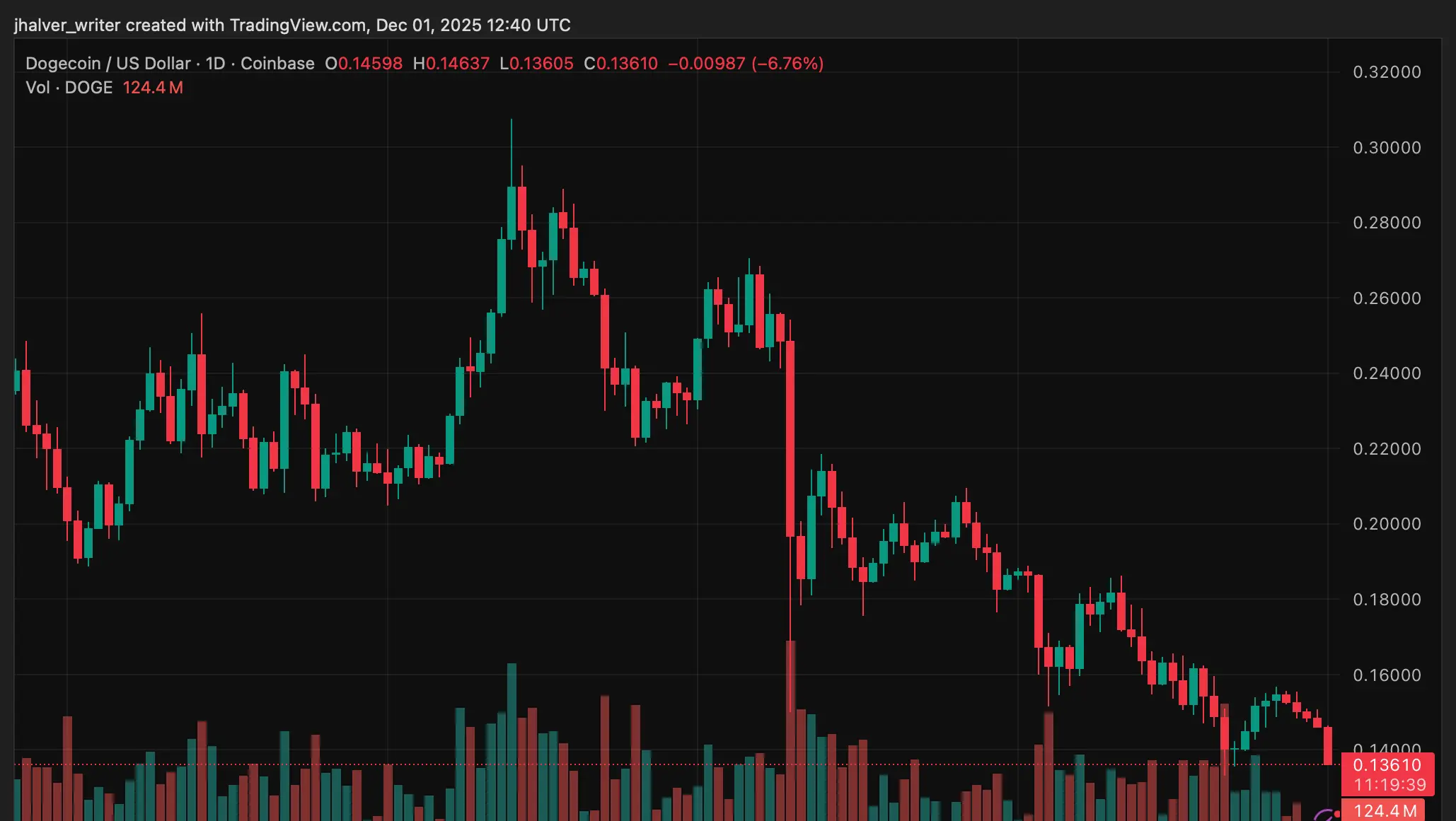 Giá DOGE đang có xu hướng giảm trên biểu đồ hàng ngày.