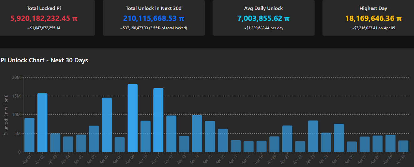Lịch trình cho phần còn lại của tháng 4 có thể là điểm sáng ở đây, khi số lượng PI mới được mở khóa giảm xuống dưới 5 triệu trong một vài thời điểm.