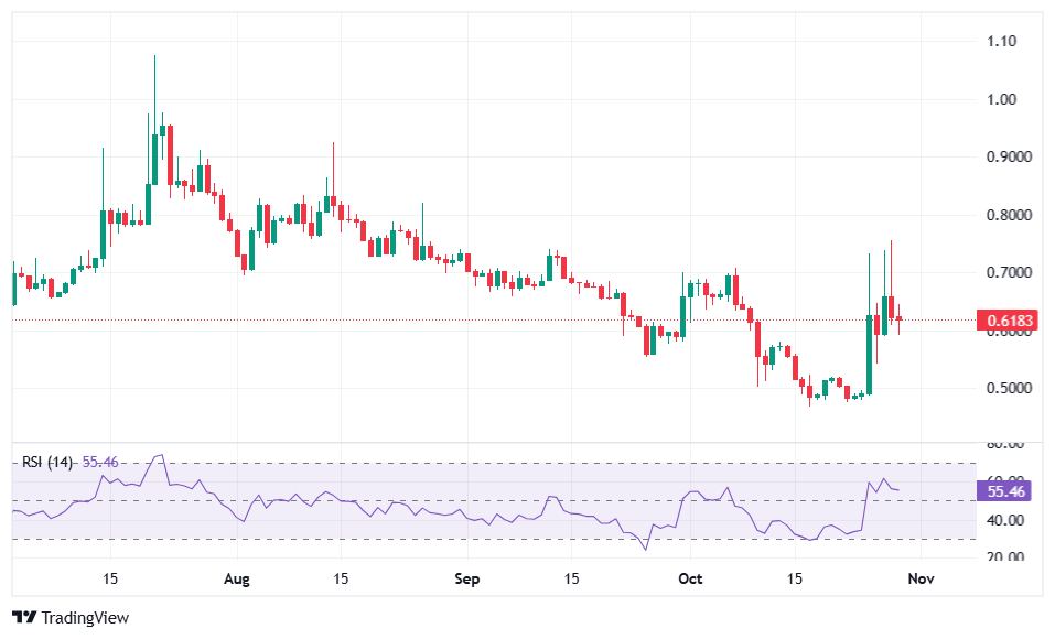 盡管在過去一個月中恢復強勁,但該代幣仍比去年同期下降約60%,並且比2024年5月創下的歷史最高價$4.69低了超過86%。