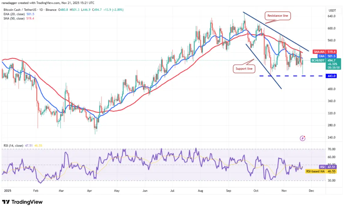 Bitcoin Cash (BCH)自443美元支撐區強勢反彈,顯示多頭積極防守。