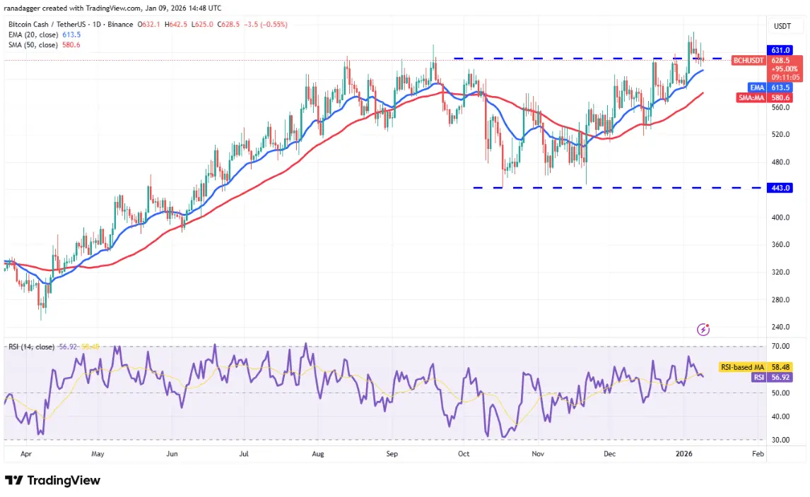 Bitcoin Cash(BCH)在週四從20日EMA(613美元)反彈,顯示低價區域出現買盤。