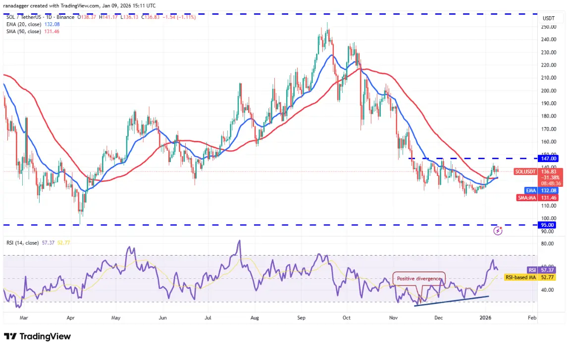 若價格從目前區域或上方阻力反轉向下突破,則此積極預期將被否定。此時,SOL可能會回落至117美元。