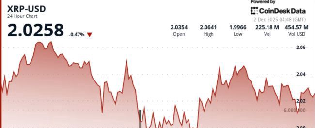 在交易時段內,XRP在0.08美元的範圍內交易,此前從2.07美元跌至2.02美元。最陡峭的下跌發生在15:00 UTC,當時交易量比平均水平激增了103%,將代幣價格從2.04美元壓至1.99美元。買家迅速介入,導致價格反彈回到2.023美元。每小時數據表明,2.02美元附近的壓縮和波動性下降,暗示着隨着XRP在關鍵支撐區上方穩定,一個更大的走勢正在醞釀。