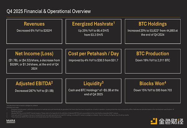 就在 2 月份宣布轉型消息的同時,MARA 也公布了 2025 年第四季度業績:儘管營運有所改善,但仍出現巨額虧損。