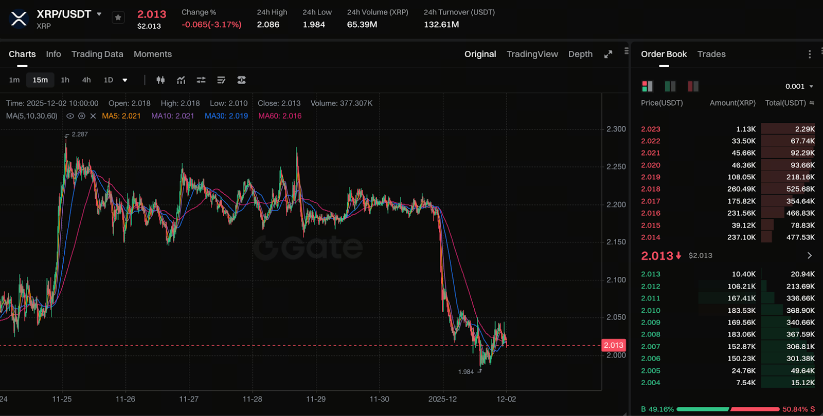 • 截至 2025 年 12 月 2 日,XRP 当前价格大约为 $2.03。