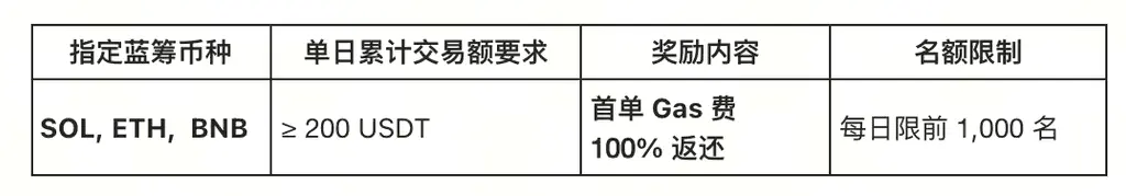 活动一:蓝筹抄底护航,交易主流币免 Gas